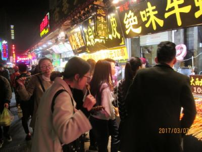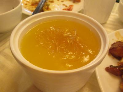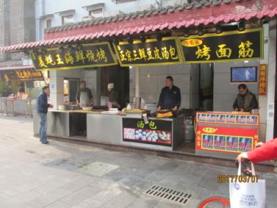 地下鉄人民広場駅を降りて、向かった先は黄河路美食街。この通りは海鮮料理のお店がたくさんあることで有名です。ツアーは黄河路美食街の中にある大富豪酒楼で今夜の夕食を食べました。南の南京西路から、北の南蘇州路に至るまで、小さなレストラン、大きなレストランがずらりと建ち並んでいる。新鮮な海の幸が特色で、とくに夜になると、分かれ道にある牌楼が特に人目をひく。色とりどりのネオンサインで描き出された躍如とした迫真感のある大きなカニ、イセエビが人々を引き付けています。格安ツアーですのでお決まりでフカヒレスープが付いています。