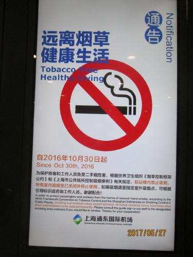 2017年3月から上海、公共の室内空間が全面禁煙に成りました。長時間の飛行機内は勿論全面禁煙、空港に到着したら一服出来ると思っていたら空港は全面禁煙、地下鉄、リニア、バスも禁煙、どうしよう。トランジットで3時間待つ時も禁煙、我慢は限界です。