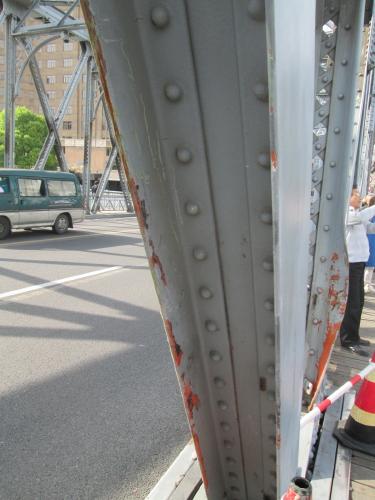 上海交通ラジオの公式ミニブログの消息によると、2017年4月25日午前6時ごろ、上海の外白渡橋でトラックの衝突事故が発生した。トラックが橋の右側の鉄柵にぶつかり、鉄柵が歪んで変形、車もひどく損傷した。現在、交通警察が現場で事故の処理を行っている。消息によると、トラックは南から北方向へ橋を渡ったところで右側の鉄柵にフロント部分を強くぶつけた。橋の鉄骨も一部変形してガードレールも壊れたが、橋そのものには影響がないとのことである。この橋は市人民政府から優秀歴史保護建築物に指定されていて数年前に全面改装したばかりでした。