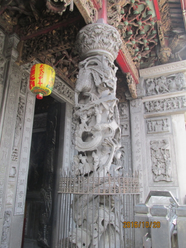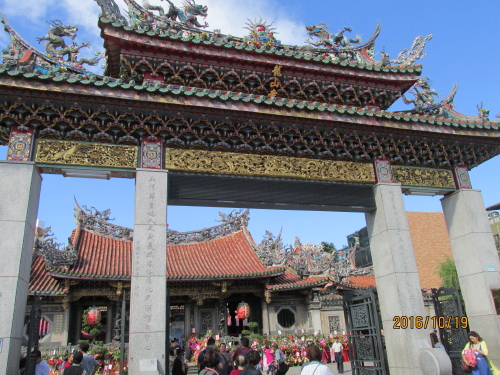 台湾の宗教百景の一つに選ばれた廟で柱の数の多さと彫刻の精微さが見所です。日本軍により焼失等の被害に会いました。中国の歴史と文化、寺廟芸術の殿堂にしようと主張する三峡出身の芸術家・李梅樹教授の企画設計により、廟宇建築の名匠たちによって工事が