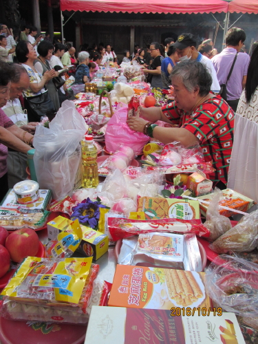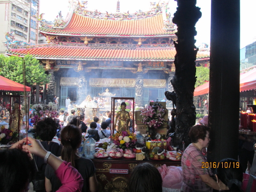 本尊は仏教の観世音菩薩ですが、道教の孔子や関帝も祀られています。他に祀られている神は大小合わせて100以上に及びます。私は三国志好きの関係で関帝をお詣りします。三国時代、蜀の将軍であった関羽雲長は亡くなってから皇帝になり、今は神様関帝となり、中国大陸各地、台湾各地、世界各国華僑の住む所、横浜の中華街など至る所に関帝廟があります。将軍関羽は信義に厚い人であった所から信用を重んじる商売の神様になりました。
