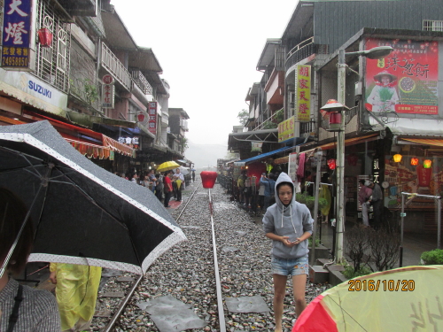 十分老街は線路脇に飲食店、工芸品店などが並んでいます。一番多く並んでいるのがランタン屋です。このランタン屋で願い事に寄って色が違うランタンを購入し、願い事が多い人は四色ランタンを購入して願い事を書いて空に飛ばす体験ができます。十分老街は平渓線の線路を挟むように店が連なっていて、線路と店の隙間は1メートル程です。ランタンを飛ばす際には電車が来ないタイミングで線路まで出てランタンを飛ばします。