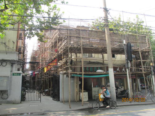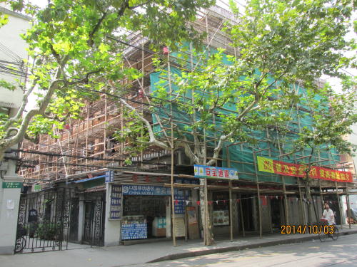 フランス租界の五原路は武康路から常熟路までを東西に結ぶ路です。老房子(1930年代前後に建てられた洋館)が並ぶお屋敷街、高級住宅地です。五原路沿いの建物には改装中の物があり改装後には店舗となるでしょう。その後お洒落な街並みに変わるでしょう。並行して東西に走る安福路は既に進んでいます。