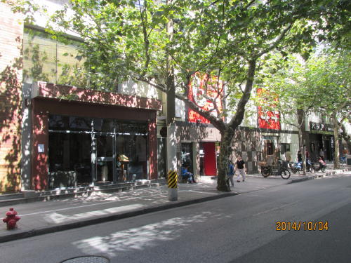 老房子(1930年代前後に建てられた洋館)も多く、古い住宅をリノベーションしたお店もたくさんあります。通りには老舗ジャズバー、ビアレストラン、カフェ、ワインバーなど、上海在住欧米人に人気の飲食店が点在している。ファッション雑貨、食器、インテリアグッズなどを扱うオシャレなショップもいっぱい。