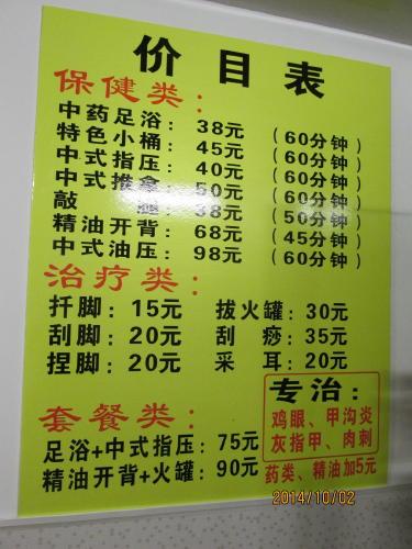 常宿のホテル近くにマッサージ店が開業しました。これで遠くまで行かなくて済みます。住宅街の中の住民相手のマッサージ店です。上海の街の中を歩き廻った後は足マッサージで疲れを癒します。値段も手頃で観光客相手の店の3分の1程です。皆さんも1度地元の按摩に行って見たらどうでしょう。間違って風俗店に行かないように注意してどうぞ!