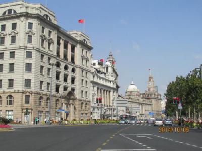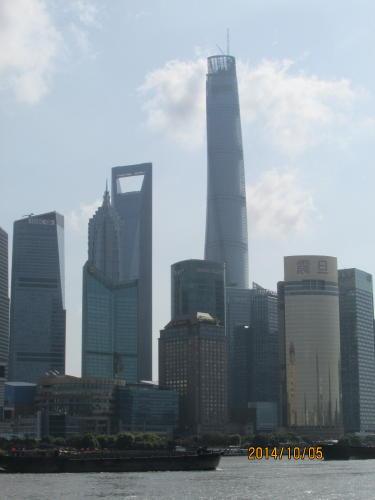 今日は国慶節の日曜日、外灘へ行って何か国慶節ならでわの物を探して見ました。国慶節で工場が休みなので空気が澄んでいます。いつもは霞んで見難い陸家嘴の超高層ビルがはっきりと見えます。写真に撮ってもはっきりと写っています。14年8月3日に「上海浦東新区陸家嘴エリアで建設中の超高層ビル「上海中心大厦」が8月3日、主要構造部の最上部に最後のパーツを設置し、完成させたことが分かった。着工から6年をかけ、計画されていた632メートルの高さに到達した。」との記事がありましたので先端部分を撮影して来ました。国慶節で良かった事は空気が澄んでいて外灘の建物も、浦東の超高層ビルも綺麗に写真が撮れた事です。