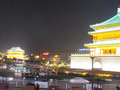 西安城壁の中心に建つ木造建築で1384年建造とあり、600余年の歴史ある建物です。鐘楼を起点として東西南北に四つの大通りが延びていて、城壁に当る部分には東西南北の門が建っています。昔は人々に時を知らせていたという鐘があるので鐘楼と呼ばれています。現代の車社会に合せ鐘楼の周りは大きなロータリーになっており、バス路線はここを経由して東西南北へ伸びています。夜はライトアップされて美しく輝いています。鐘楼内では定時に中国楽器の鐘を中心に演奏会が催されています。また中国の伝統的な文物も展示されています。