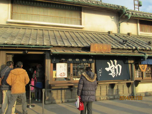 平成25年12月19日に東北自動車道羽生サービスエリアの上り線側に故・池波正太郎氏の代表作「鬼平犯科帳」とコラボレーションした「鬼平江戸処」がオープンいたしました。館林インターから乗り羽生サービスエリアに寄って加須インターで降りました。時代劇が大好きで旅行記も10本程投稿しています。羽生パーキングエリア(上り線)に江戸の街を再現した建物が並び建物の看板や細かい意匠まで時代考証に基づいて再現されています。特に飲食の軍鶏鍋「五鉄」は密偵の集まる所として鬼平犯科帳に良く出て来ます。船橋屋文化2年(1805年)創業の“元祖くず餅の店"として知られる老舗なども出店していて、音楽、照明などまで連動させ臨場感を高めています。中々良く出来ています。