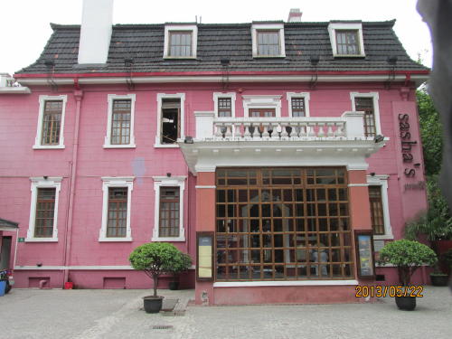薩莎西餐庁はフレンチレストラン・Sashasです。東平路11号上海市の優秀歴史建築に認定されてます。1921年建。フランス文芸復興風格の花園住宅として建てられ、一時蒋介石・宋美齢夫妻が住んでいた事もあり、また、毛沢東夫人江青が拠点とした事もある由緒ある建物です。一階は英国風のカウンターがあるバーで、2階は「ヌーベルキュイジーヌともいうべきコンチネンタル料理のレストランとなっています。衛山路界隈は夜毎、欧米人などで賑わっています。残念ながら一人旅で料理のレポートは出来ません。建物のレポートのみで終わりです。- 旅行時期