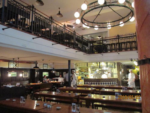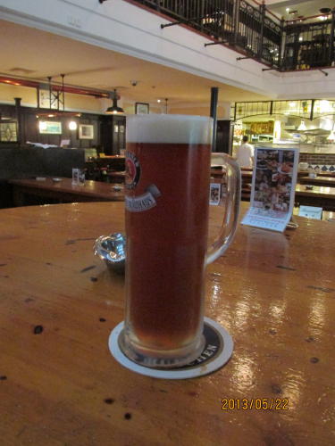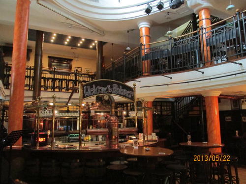 宝菜娜餐庁はPAULANER・BRAUHAUSと言うドイツ料理店です。旧上海オペラ座の建物をビヤホールに改装しました。オペラ座だけに3階までの吹き抜けで柱も無くとても広い空間で多くの客を収容出来ます。ビールは本場ドイツの製法に基づいてここで造っている本格的なもので、ジョッキは0.3リットルから3.5リットルまであるそうです。黒ビールの0.3リットルを飲んで見ました。残念ながら一人旅で料理のレポートは出来ません。建物のレポートのみで終わりです。- 旅行時期