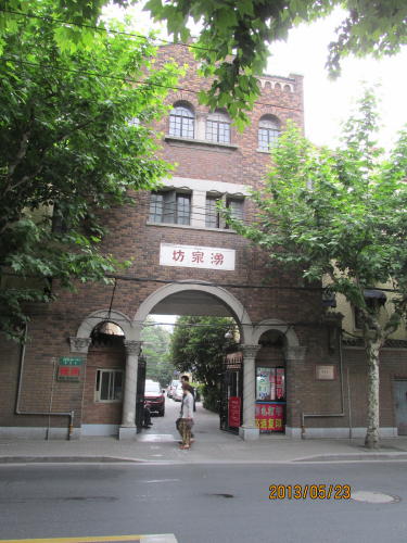 石庫門住宅は旧上海の路地住宅の典型的な様式です。土地を無駄なく使うため、限られた面積により多くの人を収容し、また中国人に受け入れやすいように、住宅建設では西洋人から「長屋」と呼ばれる建築方式を採用しました。この住宅の入り口には石で造られた門があったので石庫門住宅と呼ばれました。湧泉坊は静安寺近くの愚園路にある高級石庫門住宅です。1936年に建てられた3階建て、スペイン様式の石庫門住宅です。屋根の形、窓の形、ドアの形、ベランダの形が変化に富んでいて円柱の彫刻も精微です。上海市より優秀歴史建築に認定されています。中は庶民の生活の場です。家の中まで覗き込まないようにして下さい。