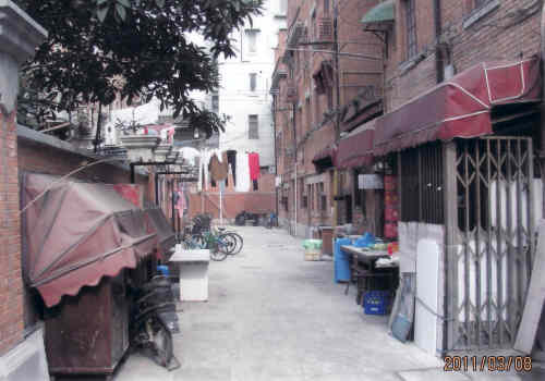南京西路(旧静安寺路)の「梅龍鎮伊勢丹」の向かいに入り口がある1929年に建てられた木骨レンガ造りの3階建て文化財住宅地です。多くの人々が住んでいる住宅の一階部分を手作りで店舗に改造しています。