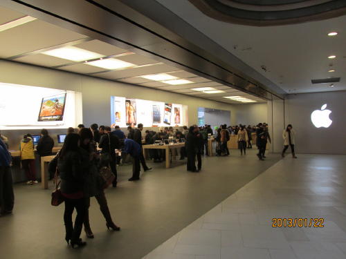 南京東路と河南中路の交差点で再開発工事をしていたビルが恒基名人購物中心と言う名のショッピングセンターとしてオープンしました。南京東路に面した1階は一足早くアップルの店舗として営業していました。河南中路の向かい側には現在ビル工事中、南京東路はまだまだ店舗が増えそうです。店内はまだ全部出来上がっていませんが七割は営業しています。各階に飲食店が入ってますので南京東路で食べる所を探さずに済みそうです。地下2階は地下鉄の南京東路駅に直結しています。