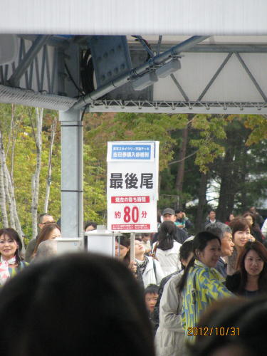 まだまだ長い行列で展望台まで一時間半、ウエブチケットで勝負しますか?