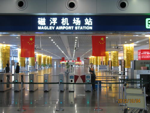 2003.12.29に開業、最高速430km/h(但し8:30-17:30の間以外は最高300km/h)で地下鉄・龍陽路駅と浦東空港の間を29.863kmを7分20秒で結ぶ。(300km/hは8分10秒)運行間隔は19時までは15分間隔、19時以降は20分間隔。料金は50元で、搭乗券で40元となる。VIP車両もあり100元。往復料金も設定されており普通席80元、VIP席160元。今後は万博会場(南北高架路の盧浦大橋付近)・上海南駅を経由し杭州へ延伸予定。虹橋駅、虹橋空港と結ぶ話もある。色々あるが工事はしていない。