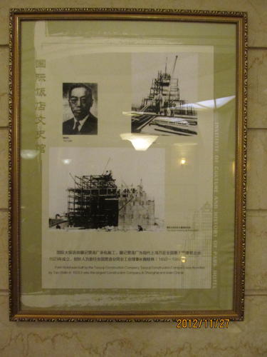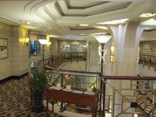 人民広場の北端の南京西路に面して建っている国際飯店(パークホテル)は1933年竣工。競馬場に来る外国人相手に1934年開業しました。外国からの要人宿泊、様々なメインイベントをこのホテルで開催いたしました。24階建て、高さ83.3m。当時はアジア一の高さを誇っていました。一階と二階は吹き抜けで国際飯店文史館になっており、飯店の歴史は上海の歴史でもあります。1997年のリニューアルで開業時のアールデコ調の内装に忠実に復原いたしました。場所は上海の中心地。外灘、南京東路、南京西路、美術館、博物館など歩いて行く事ができます。