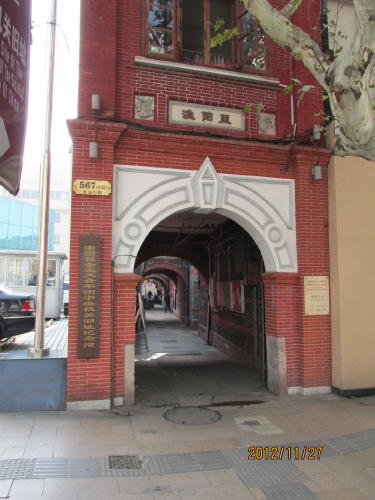 「中国社会主義青年団中央機関旧址」1920年夏、共産党創設に先だって陳独秀らが組織した共産主義学習グループ。1922年初め霞飛路漁陽里(現淮海中路567弄)2棟の旧式里弄住宅。全国重点文物保護単位。准海中露567弄漁陽里6号、
