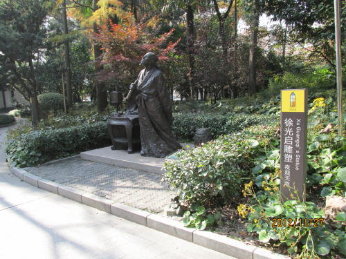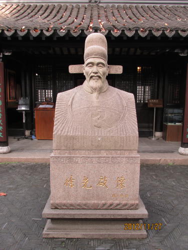 徐 光啓は明代末期の中国の暦数学者。有名なキリスト教徒でした。博学多才で若くして郷試に首席で合格して、その後進士に及第した。科挙の試験に主席で合格すると即高級官僚に登用されます。徐 光啓はその博学多才を農業政策に活かして農業振興に貢献しました。編著に「農政全書」があります。キリスト教の宣教師から西洋の知識(天文学・地理・物理・水利・暦数)を得て、農業の振興に寄与いたしました。尚書にまで登りますが妨害に会い、やり残した事も多いと嘆きました。- 旅行時期