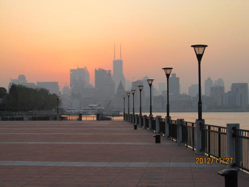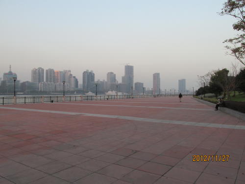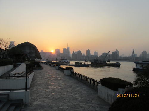 - 黄浦江の対岸、北外灘の新しいビル群が見えます。