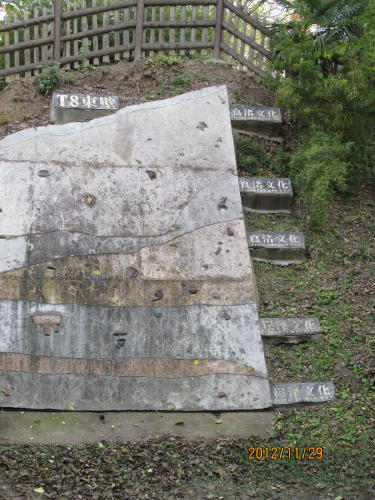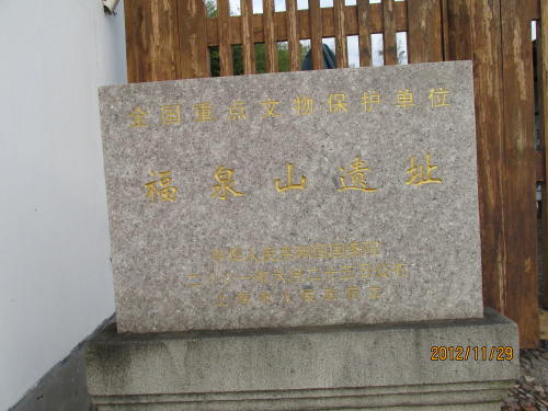 青浦福泉山遺址は、上海市の西部青浦区の東北9?の重固鎮から発見され、1979年試掘し、1982〜1984年に正式に発掘しました。新石器時代の考古学界の貴重な遺跡で「全国重点文物保護単位」に認定されています。発掘現場が公開されていまして地層の年代が一目で解るようになっています。同園内には重故鎮出身の著名人の像も立っています。