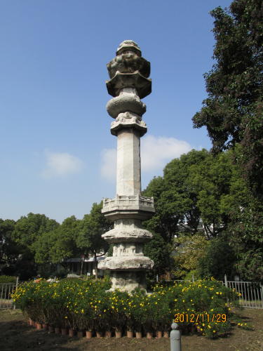 松江唐経幢は中山東路西司弄43号(中山小学校内)にあります。地下鉄9号線松江新城駅より22路バスにて松江二中で下車。建築唐代大中十三年(859)上海で現存する最も古く、中国で現存する唐代の中で最も高い。唐陀羅尼経幢。 唐代大中13年(859年)建立。上海地区に於ける最古の地面文物。華定の仏教信者が募金で建てた。幢身の地平1.6mに陀羅尼経文が彫ってあります。1962年大修理の際、経を発掘した。高さ9.3m。千年以上も堂々と立っています。全国重点文物保護単位に認定されています。