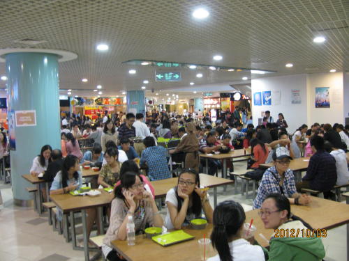 旧正月の春節と五月の国際労働節と並ぶ法廷祝日連休です。国慶節とは中華人民共和国の建国記念日。1949年10月1日に故・毛沢東主席が天安門で建国宣言をした日で7日間のお休みとなる。休暇を利用して故郷に帰る人、国内、海外旅行に行く人など楽しみにしている人が多い。日本に旅行を計画していた人も多くいましたが香港、韓国、ハワイなどに変更したようです。打浦橋にある日月光広場の地下食堂街。100店舗以上が集まっています。フードコートは大人気。日本食も多く、上海の若者の間で人気を得ています。国慶節の休みを使い、ショッピイングや飲食を楽しんでいます。日本食を敬遠する事も無く、美味しいものに国境は有りません。- 旅行時期