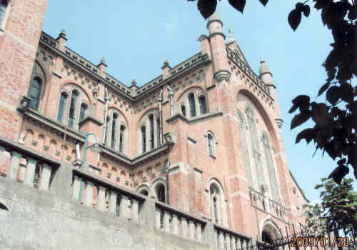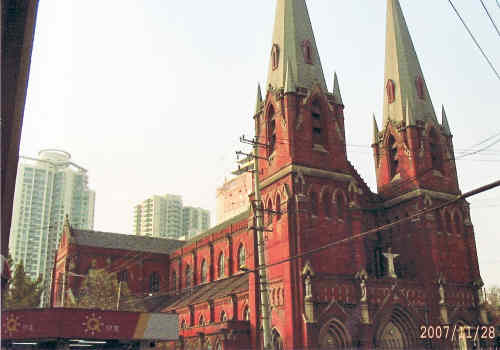 1851年建造の旧天主堂の南側に1910年に竣工した上海最大のカトリック教会建築。聖イグナチオ新堂。英国人Dodwall設計のフランスゴシック様式の赤煉瓦建築。2500人を収容する堂内の奥行きは79m、幅28m、入口両脇の高さは60m、尖塔は文革期に取り壊され、1985年修復。- 旅行時期