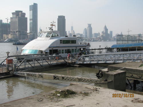 浦東の陸家嘴駅から濱江大道の遊歩道を抜けるか?東昌路駅から徒歩10分か、金陵東路から東金線フェリーに乗って浦東側乗り場東昌路へ行っても良いでしょう。陸家嘴駅の喧噪を離れてのんびり出来る穴場中の穴場、東昌濱江緑地。黄浦江を挟んで外灘の景色を独り占めに出来ます。やや斜めに歴史建築物を眺めるようになりますが、また一味違った景色が楽しめます。途中のレストラン、喫茶、コンビニなど何もありません。ここは元楊家渡埠頭だったそうで当時の杭、錨のチェーン、停泊用のバースなど実際に使われていた物をモニュメントとして残されています。東昌濱江緑地の南側は上海浦江輪渡運の楊復線乗り場があり、浦西側に渡ることができます。