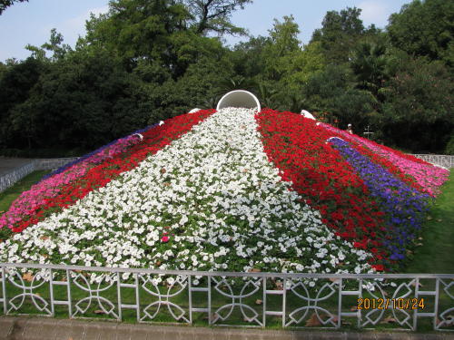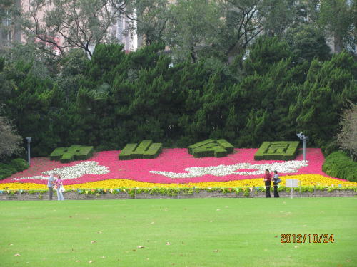 上海の中山公園に秋を探しに行きました。紅葉は無く菊の花壇が有りました。