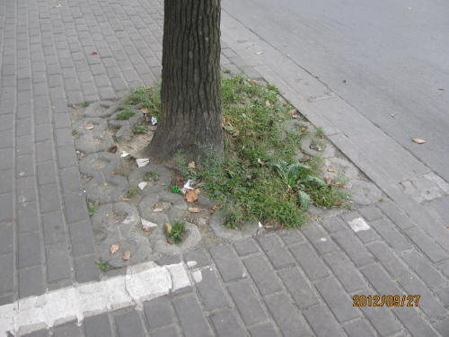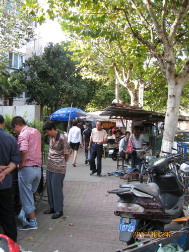 地下鉄3号線、友誼路駅下車、近くの友誼路を東へ歩いて行くと団結路に到着、団結路は隣の密山路から始まります。密山路から友誼路の間の歩道は露店で埋め尽くされています。車道も荷物運んで来た車で埋まっています。友誼路から北側は並木路も綺麗で、歩道も確保されていました。終点近くの漠河路付近は小学校のお迎えの車で道路の両側が埋め尽くされています。- 旅行時期