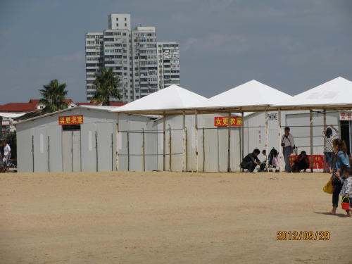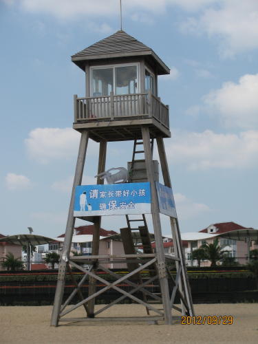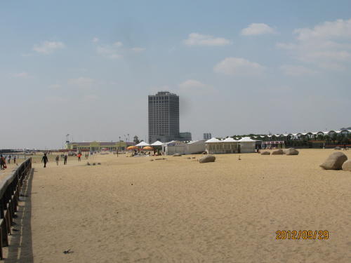 上海の名前に海の文字を使っています。また地図で見ても海に面していますが漁業が盛んで新鮮な魚が直接上がる漁港はありません。夏の海水浴が出来る遠浅の海岸もありません。上海の中心部から海岸までの距離も大変遠いです。12年9月28日に金山鉄道が開通し海岸がとても近くなりました。金山区にある海浜公園に行って来ました。防波堤に囲まれた公園ですが、浪打際からすぐ5m程の深さになるらしい。この時期泳いでる人はいませんでしたが来年の夏は金山鉄道に乗って大勢の人が海に来てくれることを期待します。