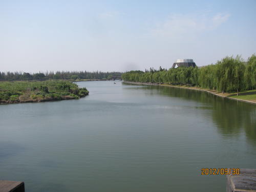に有るのが珠渓路です。中央の緑地帯、両側の緑地帯と一番の広さを誇る並木路でした。外側から見る朱家角も味のある景色でした。- 旅行時期