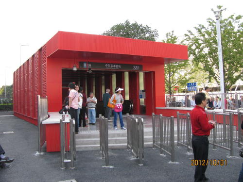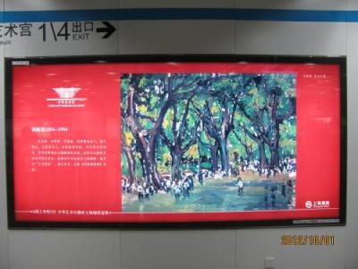 旧万博会場の中心部に地下鉄8号線の中華芸術宮駅が開通いたしました。同時に中華芸術宮(中国館)が開館いたしました。中華芸術宮はネットでしか手に入らない券が無いと入れませんので地下鉄駅とその周りをご案内いたします。中華芸術宮駅の出口は中国館を模した赤い建物、駅構内は地下鉄美術館に成っていて、著名な画家の作品が飾られています。中華芸術宮の周りには月亮船(サウジアラビア館)やメルセデスベンツアリーナ、世博中心、世博展覧館。循環バスに乗り換えればイタリア館へ行きます。今後活用されてない建物、広大な敷地が有りますので将来が楽しみです。