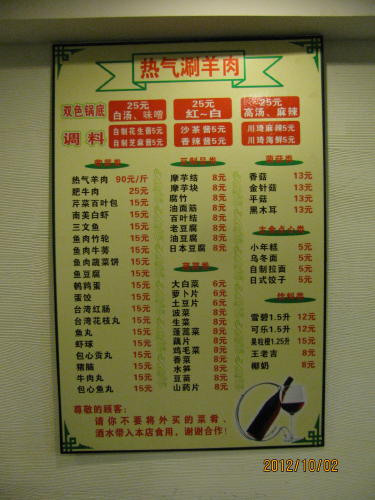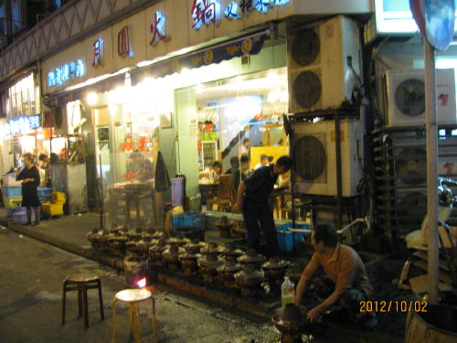 雲南料理の代表は火鍋。夏でも人気ですがやはり寒くなると熱々を食べたくなりますね。今年は残暑が永かったですが国慶節に入り、涼しくなりました。休みの日は家族で火鍋を食べたいとの思いで多くの家族連れが雲南南路に集まっています。店の前では火鍋に炭を起している風景が一層、火鍋を食べたくさせます。私一人旅は火鍋が食べられません。日本語が出来る「容」のマスターに相談したら何とかしてくれるそうです。- 旅行時期