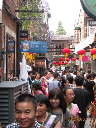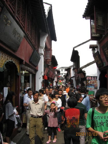 上海市内で地下鉄で簡単に行けるもっとも近い水郷老街、国慶節の連休で海外旅行を出来る人は金持ちだけ、一般庶民は七宝や豫園ような近くで手頃な観光地へ集まります。七宝の老街の通りは身動きの出来ないほどの大混雑。小吃の店で名物食べたり、土産物屋で物産を選んだりして楽しんでいます。- 旅行時期