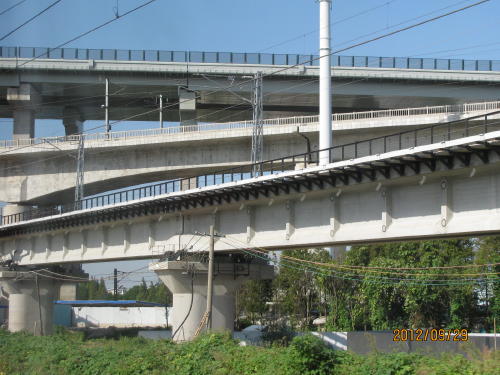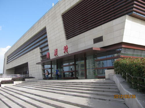金山鉄道は22号線とも言われ12年9月28日開通いたしました。直通列車は上海南駅から終点金山衙駅まで30分、途中停車駅なし。各駅停車は1時間掛ります。開通して2日目、ダイヤは1時間に1本しかありません。料金は終点まで10元。車両は高速鉄道と同じ車両を使います。ただし最高速度は160?です。最初の駅、莘庄駅は開業していませんので通過いたしました。春申駅、新橋駅、車墩駅、叶榭駅、亭林駅、金山園区駅、終点金山衙駅の8駅です。地図を見ますと元々ここには貨物線なのか線路がありましたので、その路線を活用したようです。車窓の風景は畑ばかりです。金山区は数少ない海に面して海浜公園があります。いままではバスで行った事がありますが2時間ほど掛りました。これで金山区の開発にも拍車が架かります。すでに金山衙駅の周辺にはマンションが