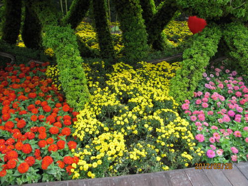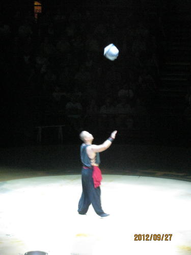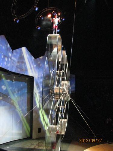 前回の「カレイド」に続き「今回は時空の旅」です。現在は技だけを見せるのでなく、光、映像、音、衣装など総合的な演出が売りものです。一番安い90元の席で見ました。ツアー客向けの席ですが日本人ツアー客が居ないので当日買えました。円形状の劇場ですので端の席でもよく見えます。只スクリーンは横からでは見えません。オートバイは近くなりました。8割ほどの入りです。開演すると90元の席の人は暗い中、空いている良い席に移動してしまいました。撮影禁止ですので写真を撮る事は出来ません。フラッシュを焚くと係員が飛んできます。客席は暗いのでデジカメのスイッチを入れると画面が明るくなりばれてしまいます。周りに客が居ないので好きなように移動して、今回の写真はフラ
