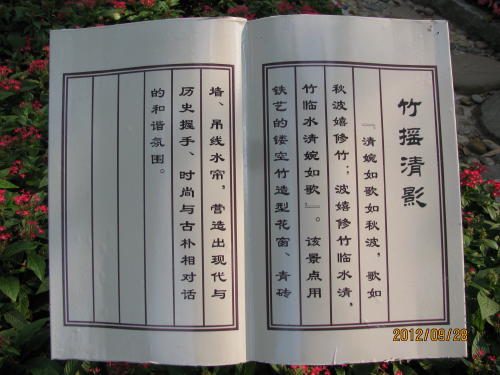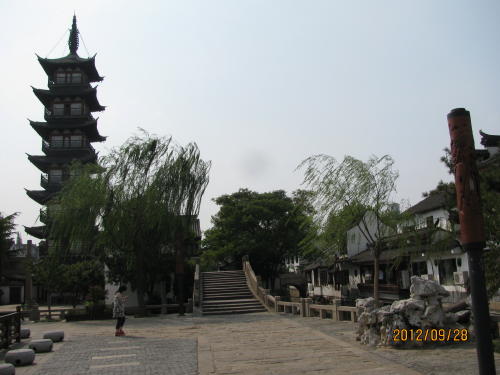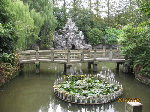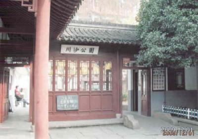上海の崇明島の城橋鎮、北門路と東門路の交差点にある庭園。蘇州の庭園、園林造りの形を取っている。大きさは小さいが一通りの要素は含んでいます。池の周りに建物が並び、漏窓、洞門、岩山、東屋、九曲橋などがあります。