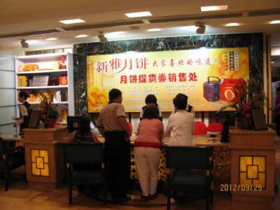 中秋節にお世話になった人に月餅を送る風習があります。年々月餅の箱が豪華になり中身の10倍の費用を掛けるものもあり、また中秋節が終わると月餅の値段が暴落、日持ちも1ヶ月程度なので廃棄処分になる物も出て問題になっています。ダフ屋は前は月餅の予約券の無い人に予約券を売っていましたが、今は月餅ギフト券の買い取りをしているそうです。役所の許認可権を持ってる人は沢山のギフト券を貰います。そんなに食べきれないのでダフ屋に売って現金化します。ダフ屋は月餅屋に手数料を乗せて買い取ってもらいます。月餅屋は物を造らずに利益が出るし、余った物の処分が無いなど三方丸儲けとなります。恐ろしき中国商法。
