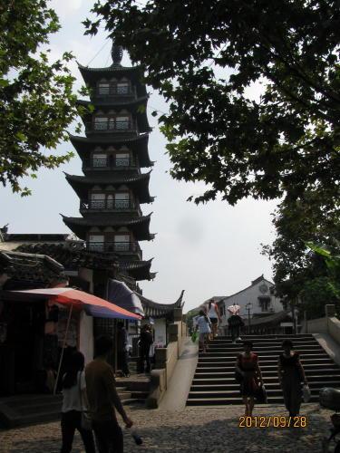 浦東新区の浦東空港に近い、川沙鎮にある川沙公園。上海市民に親しまれている広さ約5.3ヘクタールの中規模公園。園の西側には清波湖という池を湛えた江南古典式の園林があり、池畔に建つ高さ54mの鶴鳴楼が公園のシンボルとなっている。李白の「黄鶴楼にて孟浩然の広陵に之くを送る」の詩で有名な、江南三楼閣の一つである湖北省武漢の黄鶴楼をモデルにして、1993年に建てられた鶴鳴楼があります。いかにも中国の公園らしく遊戯施設やボート遊びの出来る池もあり、地元の人たちがのんびりと散歩していたりします。ガイドブックによると5階まで登れるらしいが現在は閉ざされています。近くに2014年にはディズニーランドのオープンが決定しました。