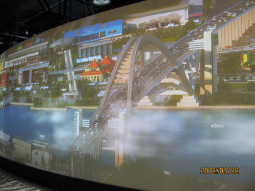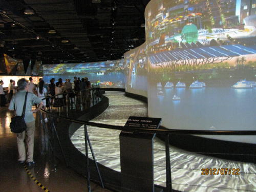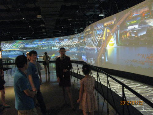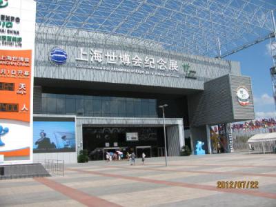 先日テレビで北京オリンピックで使用された建物がそのまま放置されたままになっている。と出ていました。あの有名になった鳥の巣でさえたまにコンサートに使う程度、建物も見学するだけで40元と高く中に入る客もいないとの事。それに対しロンドンオリンピックは造る時から再利用法を決めて建て替え易い工法を採用したりしているそうです。さて上海万博の建物はその後どうなったでしょう。有名な中国館は記念展示で稼いだ後、現在美術館にすべく改装中です。サウジアラビア館、イタリア館も展示場として活用されています。日本館、韓国館は終了直後に解体され現在は空地になっています。あまりの広さに活用されている建物を廻る循環バスが運行を始めました。今回は中国館の記念展示を新たな場所に移して展示している「世博会記念展」を見てきました。この暑さの中地下鉄の駅から15分程炎天下の道を歩きました。