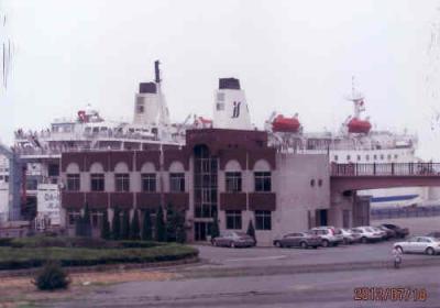 大連駅南口から13番のバスに乗ると埠頭まで連れて行ってくれます。中山広場から人民路を西に歩くと突き当たりが港湾広場。港湾広場はちょうど大連港の入口にあたります。ここから橋を渡ると船のキップ売り場です。日本占領時満州への玄関口となりました。日本から船で大連港に着き、人力車で大連駅へ、満州鉄道で長春,ハルピンへと中国東北部(満州)へ、アジア号に乗ったのでしょう。現在では工業都市でもある大連の輸出入港で中国有数の貿易港の一つでもあります。大連の開発区には日本の電気メーカー始め多くの工場が進出していますがここで造られた製品も大連港から日本へコンテナに積み込まれています。