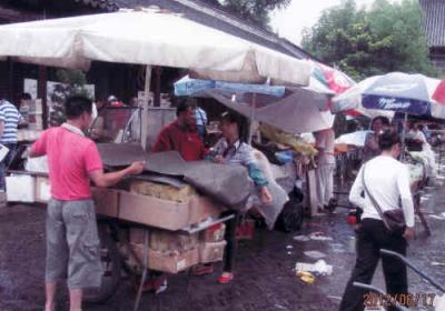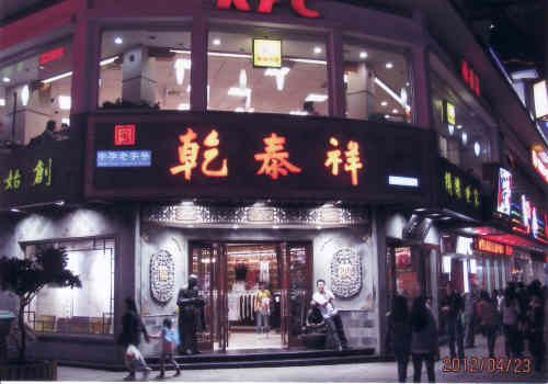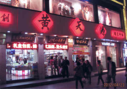 道教の廟を観と言います。ここ蘇州には古くから玄妙観と言う道教観があり、この観の門前に広がったのが観前街です。蘇州の街はこの観前街を中心に出来ています。東西に伸びる観前街歩行街の真ん中に玄妙観があります。昔から繁華街であり、商業地でした。勿論現在も蘇州一の繁華街でデパートから老舗レストラン、金・銀製品を扱う店、蘇州の名産のシルクの店、映画館等が集まっています。この通りは自動車は通れません。代わりに