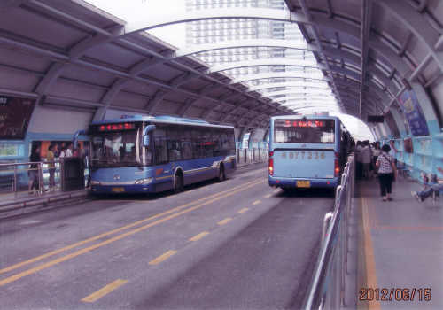 一路線は橋を渡り大陸側へと伸びています。また全線で11ヶ所で循環バスに接続していて目的地に着く事が出来る。料金も0.5元からと安く、循環バス0.5元を加えても路線バスより速く、安く行けます。バス停には4台分のスペースがあり、2連バスなら2台分でスムースに乗り降り出来ます。建設費用は地下鉄、モノレールより安く、車両は普通のバス(線路、架線は無い)を転用できます。- 旅行時期