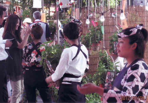 7月9日、10日は下町の風物詩、ほうづき市です。浅草浅草寺の境内にほうづきの鉢を売る店が並びます。浅草寺では四万六千日を祈願をしています。この日にお参りする