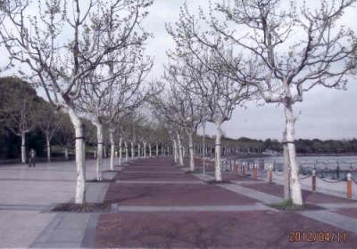 上海の桜は総じてまだ若く背丈も低く、日本の桜並木の様な見ごたえは有りません。桜の育て方は難しい、肥料から始まり、植える間隔が狭く根が広く張出せない、枝の広がりは根の広がりと同じと言われています。苗木の形が悪く幹が細い、根元から細い枝が何本も
