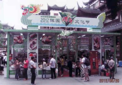 三大年中行事とは、春節と、端午の節句、中秋節です。今年の端午の節句は12年6月23日、日本の5月5日とは一ヶ月半もズレています。今年は22日(金)23日(土)24日(日)の三連休、子供の成長を祝う行事です。お世話になった人に粽を贈る風習もあります。端午の節句ではまず粽子を食べます。上海の粽子はもち米に醤油ベースで味付けをして、中に豚肉とその脂身をいれて作る。包む材料としてはアシの葉っぱが用いられる。しっかりと詰め込んだ後は、紐でしっかりと縛る。鍋にいれて長時間煮詰める。他に菖蒲を飾る、(日本は菖蒲湯。)竜船レース(日本はドラゴンレース)。生薬の香り袋などがあります。今日は豫園で端午の節句を味わって見ましょう。中でも人気は五芳斎と朱家角阿婆だと教えてくれました。
