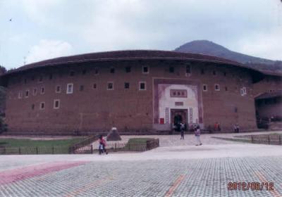 厦門旅游集散中心の永定土楼ツアー(直通車)8時30分 厦門旅游集散中心(梧村汽車站)を出発し 経海滄大橋、厦澤高速、澤龍高速、国道319線を通り約3時間掛け永定高北土楼群に到着。11時30分から各自で昼食、土楼観光(ガイドなし)をしていただき15時30分駐車場に集合、厦門に18時30分頃の帰り予定です。「土楼の王」と褒め称えられる承启楼を見学。承启楼は外側は四階建てで一階あたり100の部屋があり、合計400の部屋があります。同心円上に4巻の建物があります。四層四巻“円の中に円あり、円の上に円あり”と言われています。また当地では"天楼""天助楼"とも言われ神秘的な光の環を描きます。三百年の歴史を持ち国家重点文物保護単位に認定され、世界文化遺産にも登録されています。他に博士楼、五云楼、世澤楼等を見学できます。