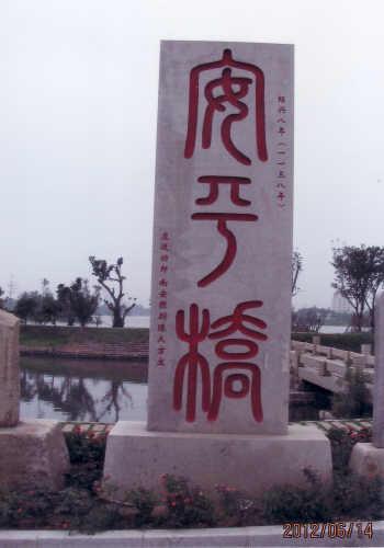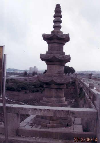 安平橋の架橋や維持に尽力された方がたの石碑があります。中に右都督の鄭芝龍の名前があり、地元の人望を集めています。夫人は日本人だと地元の人が力説していました。鄭成功の父であり、貿易商から官僚になった人です。橋の中程に水心亭があり、前面の石柱に「天下無橋長比橋」という対聯がある。世の中で長さを比べる事の無い橋と言われています。又の名前を五里橋(昔の一里は500m)と言います。