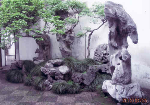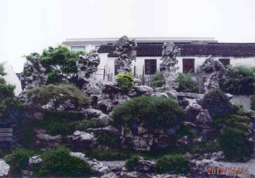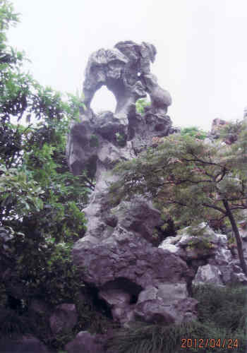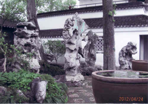 蘇州の五峰園 大きな太湖石が五つ並んでいて、これを山に見立ててます